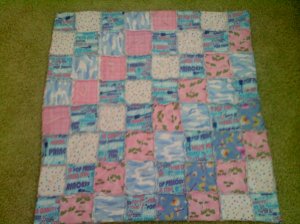 UFO #3 is once again made with scraps from Erin’s quilt. I am almost completely out of those. It is a rag quilt (sewn with seams exposed). It becomes more ragged with each washing. While it wasn’t exactly 64 like squares in the quilt, there were a whole lot of “someone’s” prayed over during the making of this quilt.