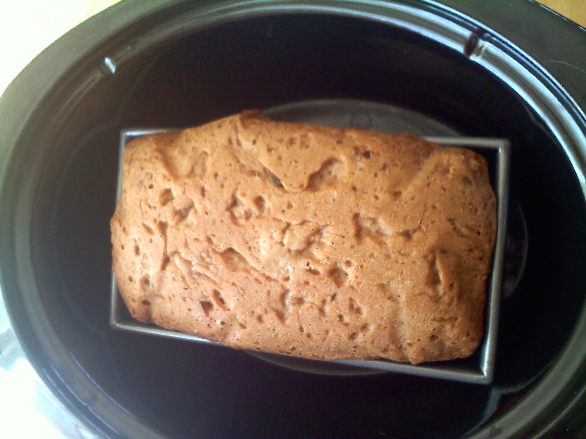 3. Cover cooker and bake on High 2 1/2 to 3 hours. Remove from pan and uncover.