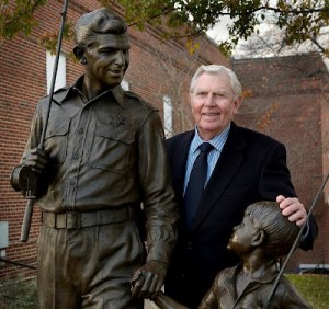 With the passing of Andy Griffith, I was deeply saddened. I wanted to curl up on a front porch with ice cold Coke in a glass bottle and one of Aunt B’s famous cakes or pies. If I use just enough imagination, I can picture a sweet little redhead hand-in-hand with the legendary sheriff as Andy got a VIP tour of the best fishing holes in heaven. Over the clank of fishing rods hitting the pail, I can hear the soft tune of the two of them whistling.