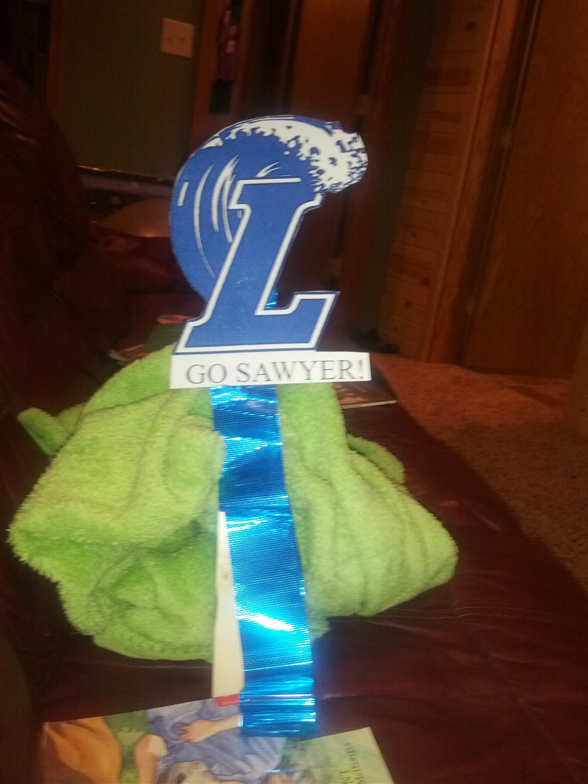To be honest, we didn’t think many would take us up on the offer for the football game. To our surprise, there were 15 people that comprised the cheering section for number 74. One among our group was Sawyer’s little god-brother, S, proudly clad in Laker blue and waving homemade flags emblazoned with Sawyer’s name and school “mascot”. S cheered on the team, and more than once he wondered aloud why the team or coaches weren’t listening to his flag as the score did not reflect his impassioned cheering. Sadly, Sawyer didn’t play for three fourths of the game, and for a while I felt like we had asked these loved ones from Georgia, California, western North Dakota, and Florida to come for nothing. Then in the final few minutes, Sawyer and the other Junior Varsity guys went in.