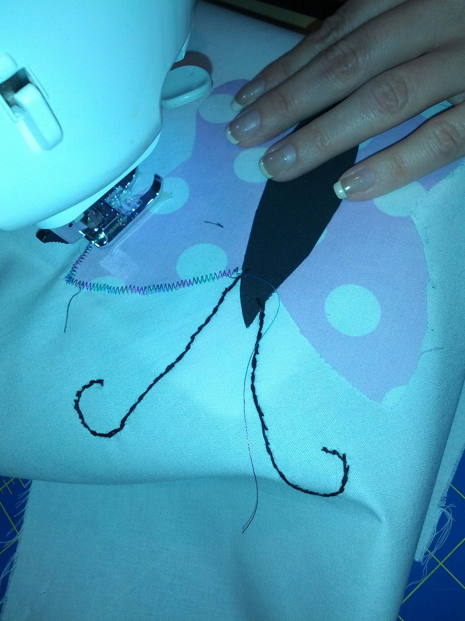 The butterflies were cut out and pinned to muslin backs. The only part that had been started was their antennae had been hand-stitched by my sweet grandmother. While I loved my Daddy’s style of applique, I wanted to make the butterflies . . . well unique.