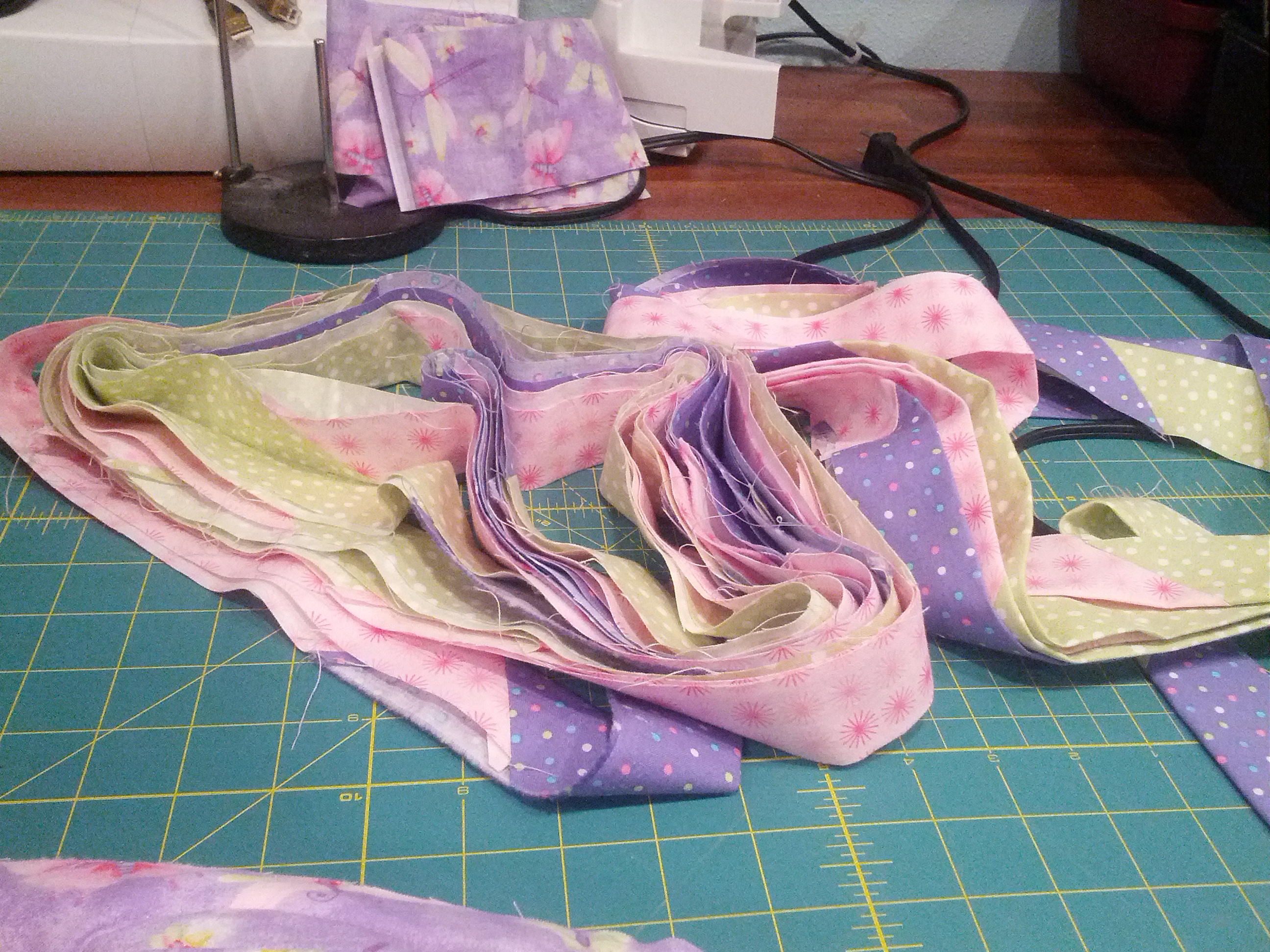 After what seemed like hours cutting squares, the piecing of the stacks of squares went blissfully quick.