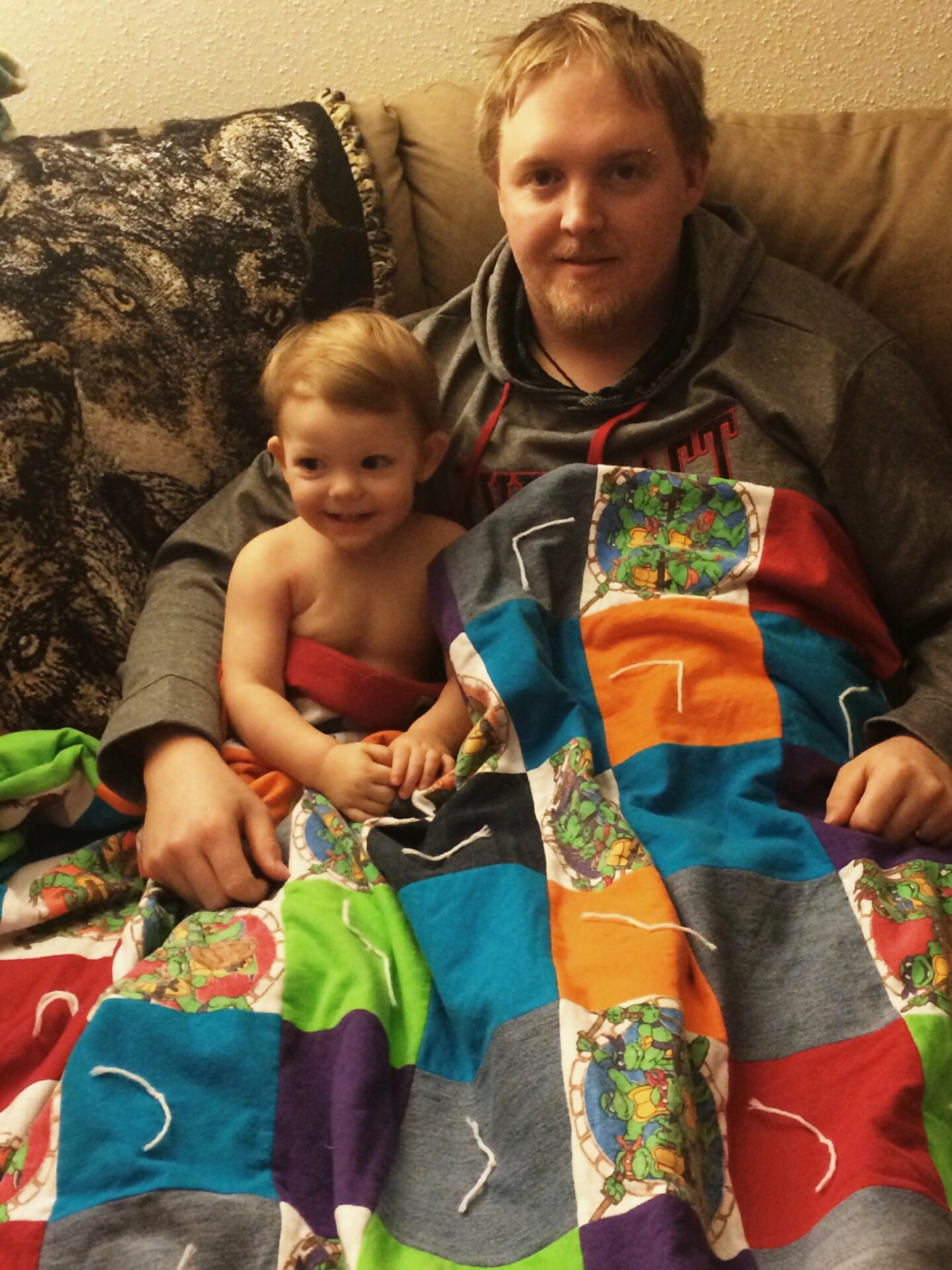 Over the years, his interests changed as he grew and matured, and he is now a husband and daddy himself. But I never forgot about all the hours we would spend bonding over the latest way our favorite mutant reptiles would battle Shredder and his lackeys, Bebop and Rocksteady. Many times in my daydreams, I remember joy savored in the days long gone. So this last year I put my mind to preserving some of that joy by making a quilt for Derek and his little girl for his birthday and her Christmas present.