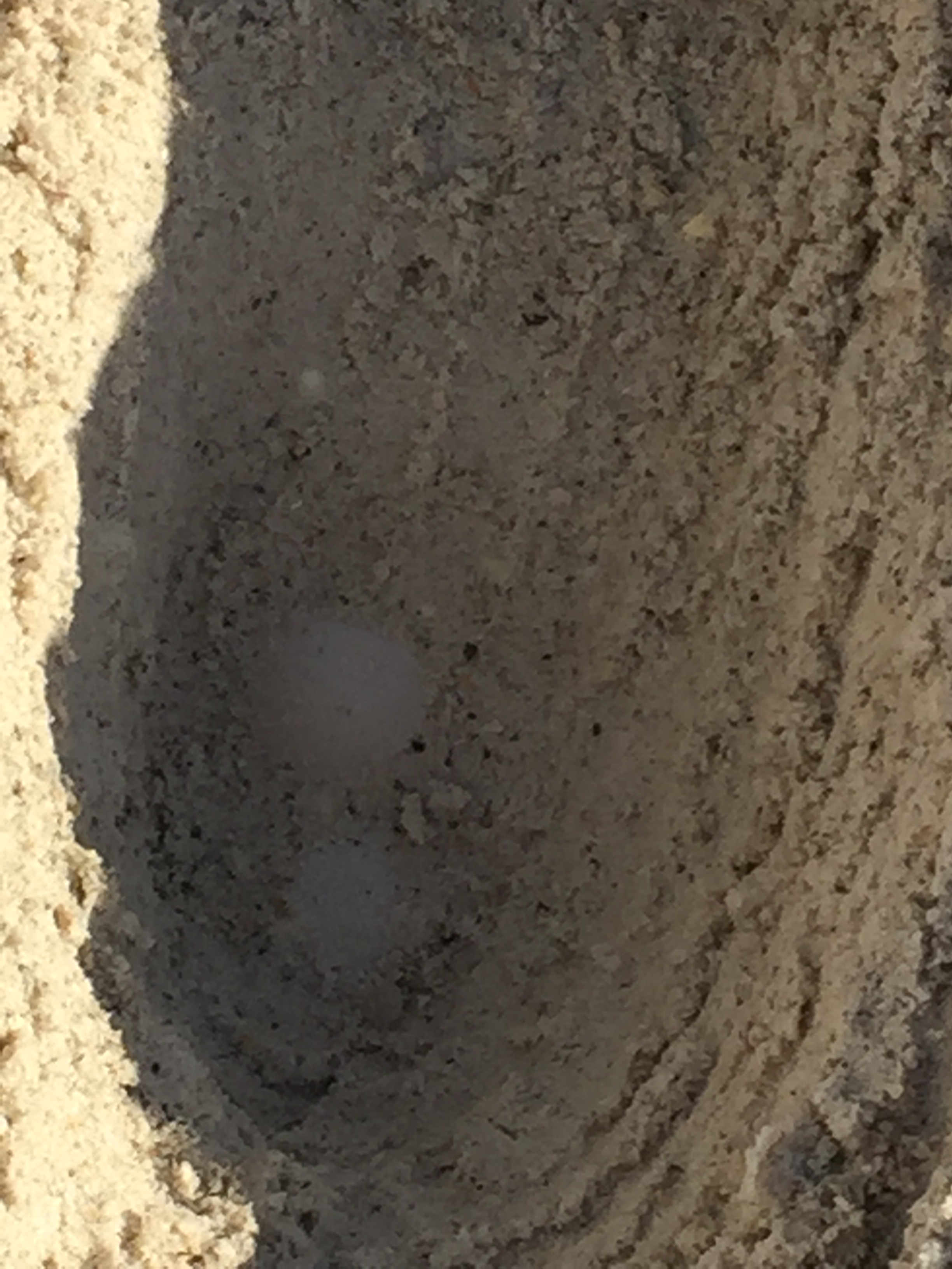 For both nests, it took the officials several tries to find the actual nest. Using only their hands, they very carefully dug, providing minimal disturbance to the delicate creatures housed within. Upon locating the actual nest which can be as deep as a couple feet, the Turtle Watch volunteers put up stakes and ropes, with signs imploring others not to disturb. A quiet excitement reverberated among those gathered. Our hearts reminding us, “Shh! Babies are developing!” With so many odds against them, the baby sea turtles would need every well wish proffered. Our quiet morning was goose-bump inducing. Everyone from our family was in awe of God’s beautiful creation at work.